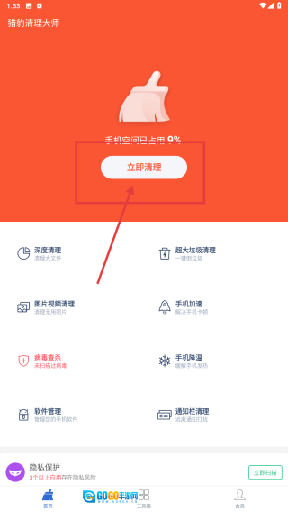 在工具页面,找到猎豹清理大师并点击,随后进入清理页面。