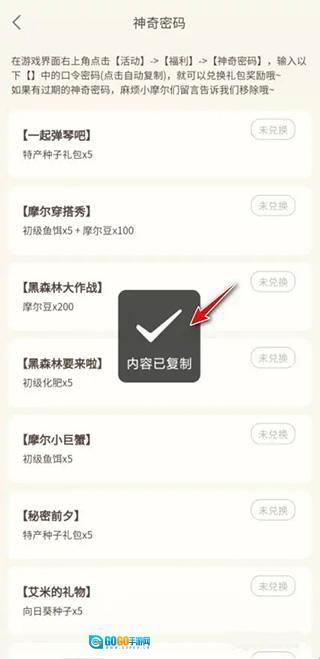 点击兑换码可进行复制,进入游戏兑换即可。