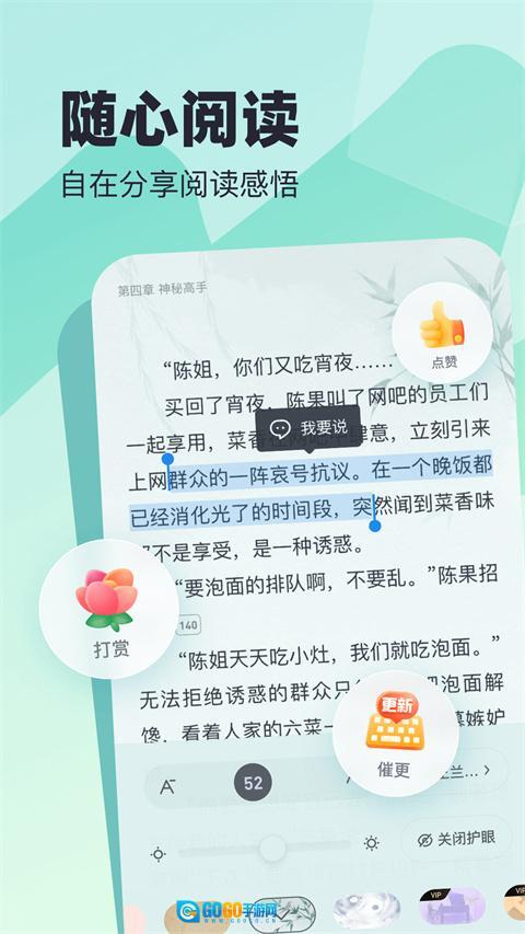 全新的自动翻页阅读功能,能让你根据自身阅读速度来设置翻页节奏,彻底解放双手。