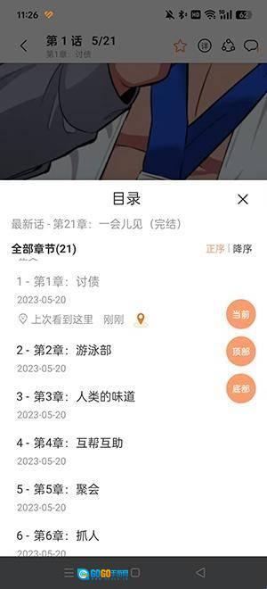 点击漫画封面进入内容页面,可以看到各章节列表。