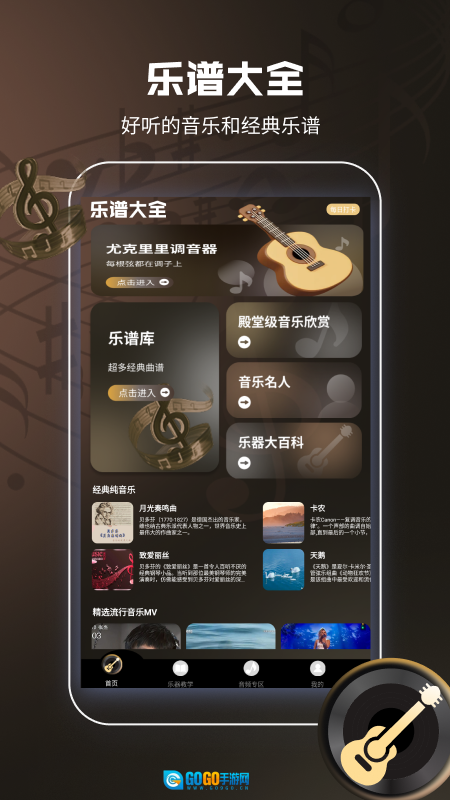 我们对曲谱做了细致的分类整理,依据风格、难度、年代等不同维度进行划分,用户能够借助关键词搜索迅速定位到想要的曲目。3、平台除了提供曲谱资源外,还配备了尤克里里学习教程,内容涵盖基础的指法、和弦知识,以及进阶的弹唱技巧,助力用户一步步提高演奏能力。