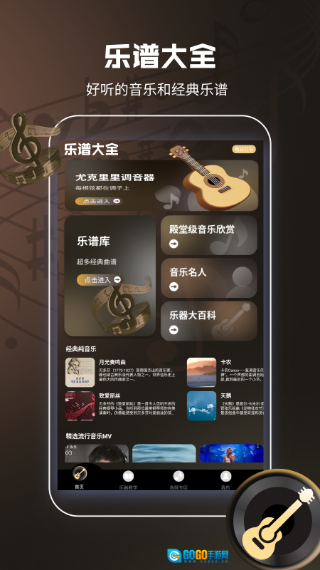 2、乐谱库,多种经典曲谱;