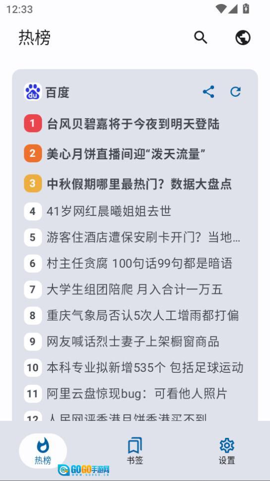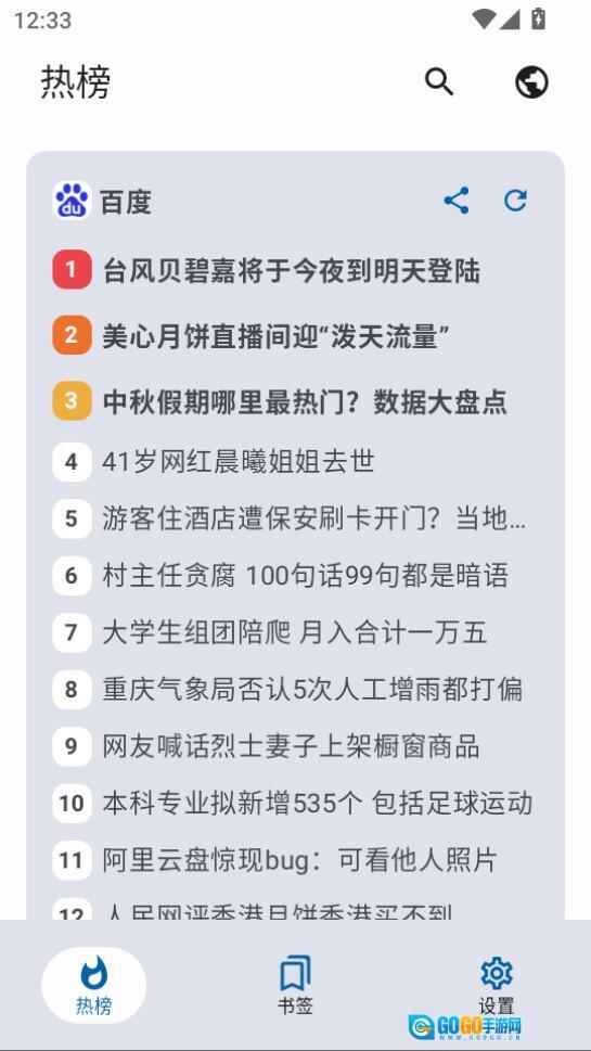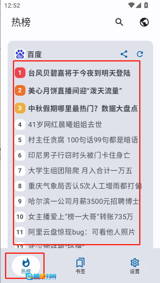 订阅成功后,再返回主页,就能看到百度热榜了。