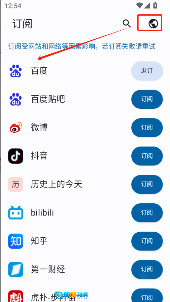 点击放大镜右侧的图标,就能查看支持的订阅平台,选择想要订阅的平台点击即可。