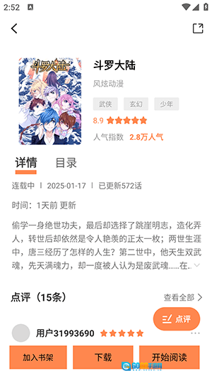 1、查找心仪的漫画,于详情页面点击相应功能。