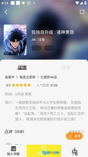 进入漫画后,能够查看漫画简介、更新时间和更新章节等信息。