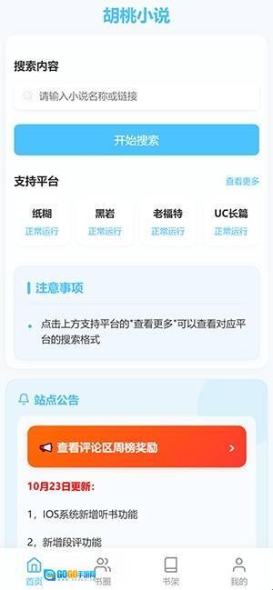 胡桃爱读书是一款聚合了1000多个平台的小说阅读应用。这款软件整合了海量平台资源,各类小说几乎都能在这里找到;订阅小说后不仅能实时获取更新,还支持手机推送提醒。它的搜索功能十分强大,输入小说名称后会在全网多平台检索,并展示所有相关资源供用户选择;用户甚至可以在阅读时直接在书中写下自己的评论。
