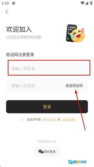 在手机验证登录页面输入手机号,勾选相关协议后,点击获取验证码按钮。