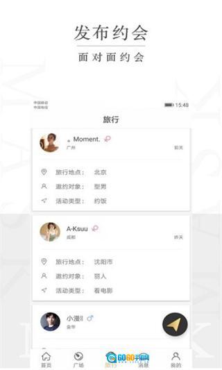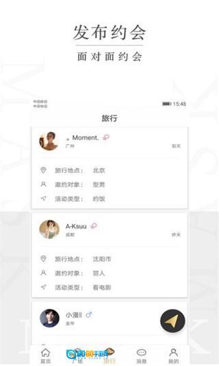 简洁的界面与便捷的操作流程,适配旅行途中、休闲时光等多元场景,用户可随时打开软件匹配伙伴、发起邀约,满足碎片化社交需求。