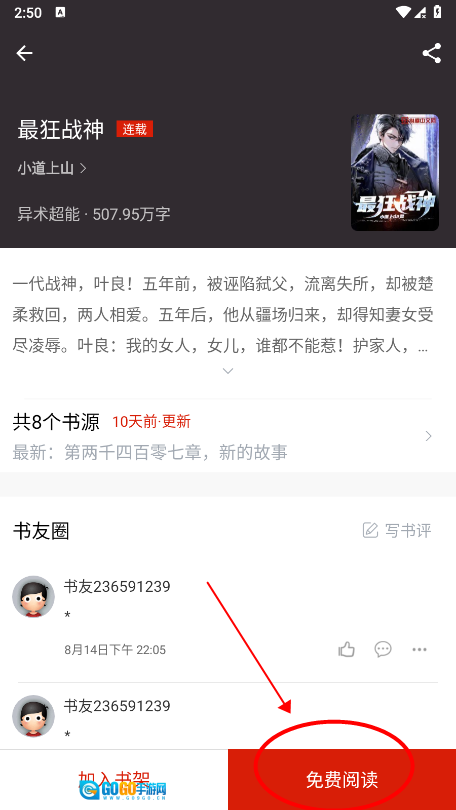 2. 进入小说详情页面,点击页面底部的“免费阅读”按钮。