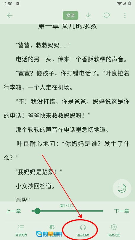 4、当您进入小说阅读页面后,在页面底部找到并点击语音朗读功能。