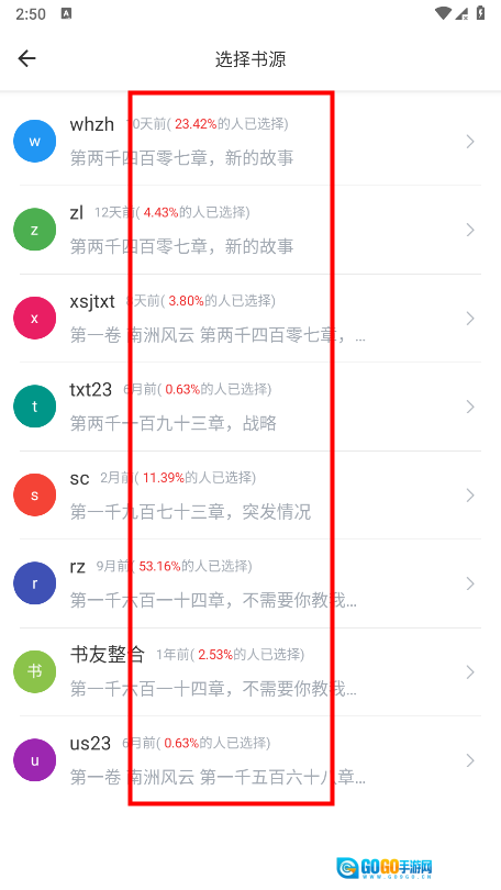 3、系统会提示你选择书源,随意挑选一个就可以。