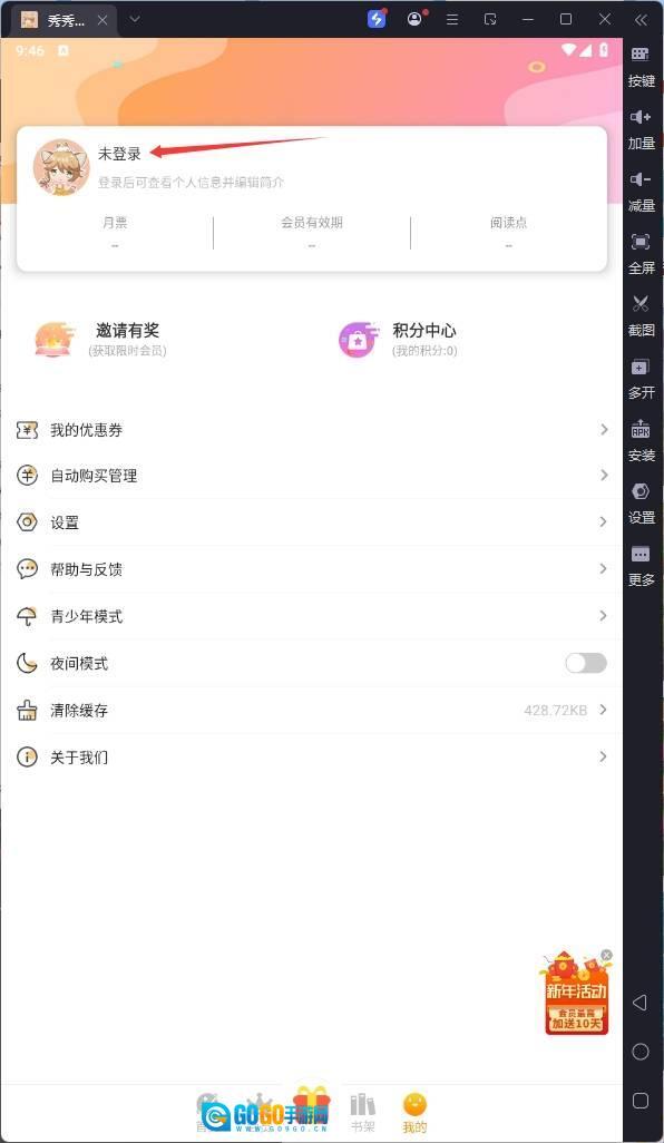 进入我的页面,会显示“未登录”状态,点击该位置完成登录后即可管理个人资料。