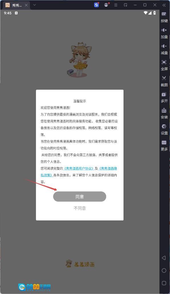 启动应用后,首先会弹出温馨提醒窗口,轻点“同意”按钮就能继续使用应用了。