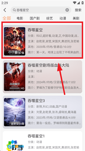 2. 待搜索完成后,点击所需结果。