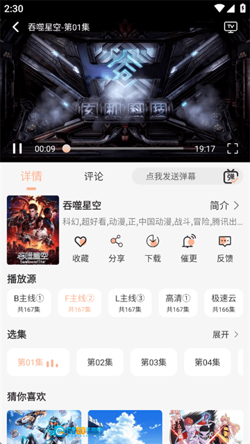 4、页面下方还设有播放源、选集等功能。