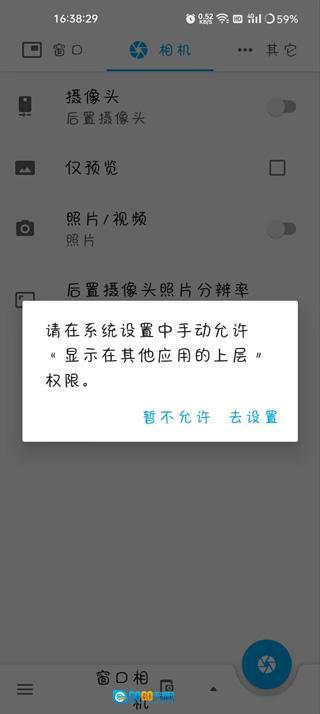 支持悬浮拍照功能,悬浮窗口支持自由拖动,在其他应用界面也能进行拍照操作。