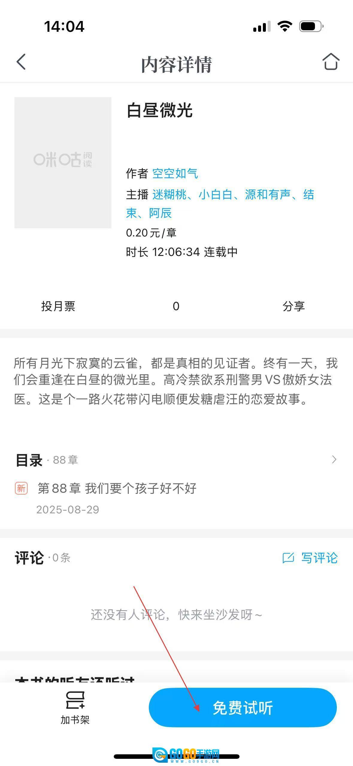 在听书页选白昼微光,进入内容详情页。