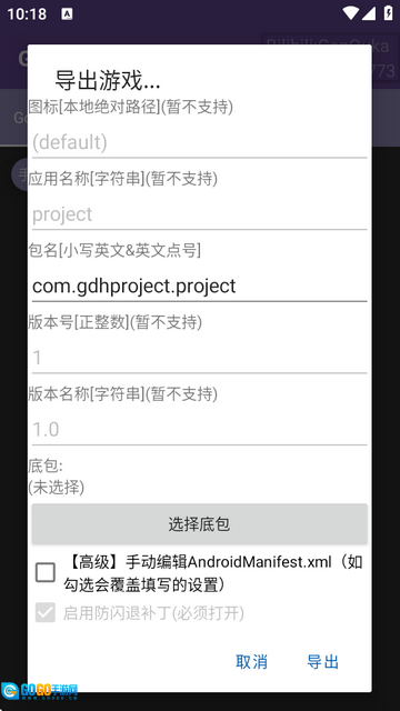 4. 导出(若未勾选高级选项,则需借助apk编辑器对应用信息进行修改;若勾选了,可参照视频中类似的修改方式进行修改)