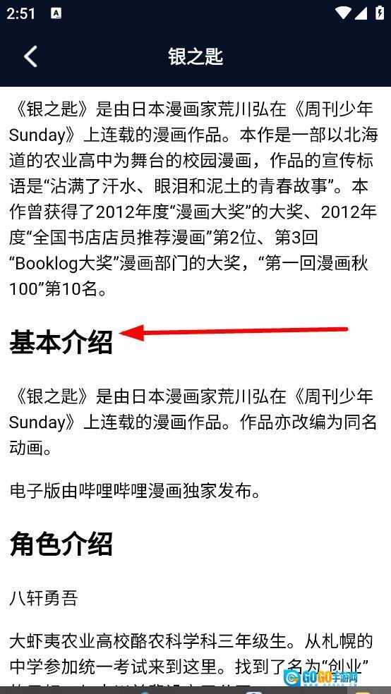 在漫画详情页,能够查看基本介绍、角色介绍之类的内容。