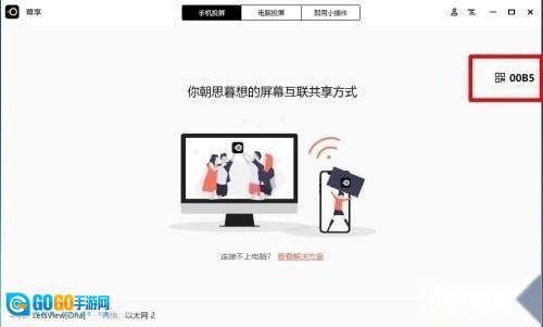 把手机和电脑连到同一个WiFi上,要是你不确定它们是不是在同一个WiFi网络里,可以参考这个方法检测一下。打开电脑上的幕享,点击屏幕右侧隐藏的投屏码界面,找到电脑显示的投屏码。