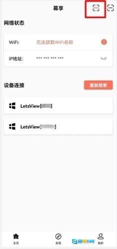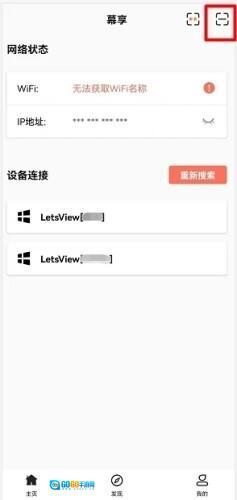 在手机上启动幕享App,找到右上角的扫码图标并点击,接着用手机扫描电脑屏幕上显示的二维码,这样就能把手机画面投屏到电脑上了。