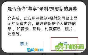 系统会弹出一个询问“是否允许幕享录制或投射您的屏幕”的提示窗口,此时需要点击“允许”按钮来完成授权。