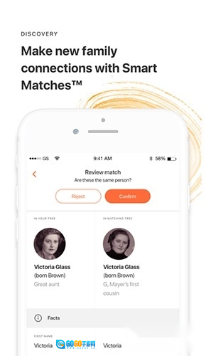 我周围的亲属——看看和你附近登录这个应用程序的MyHeritage用户有什么关系。在你下次的家庭聚会、派对或者活动里,这会是个有趣的环节。