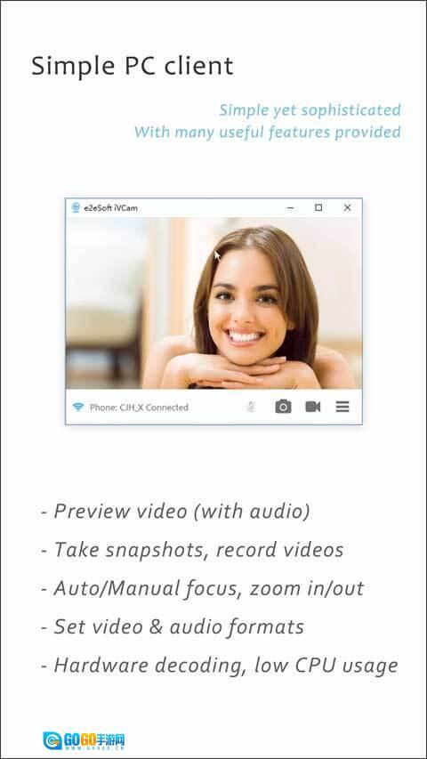 可完全替代USB摄像头或集成摄像头,与绝大多数需要用到摄像头的应用程序都能兼容