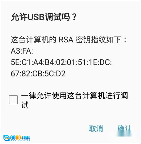启动客户端程序后稍作等待,若手机是第一次进行连接,系统会弹出是否允许USB调试的提示。