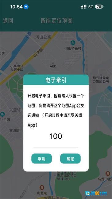 在电子牵引功能里,用户能够设定一个距离范围,例如100米,一旦狗狗的位置与用户手机之间的距离超出100米,系统就会向用户发送通知提醒。