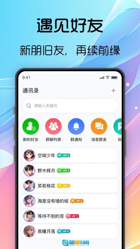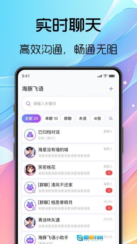 海豚飞语是一款安全可靠的即时通讯软件,支持直接发送消息,满足手机互动需求。用户可在线搜索账号添加好友,通过一键查看名片快速了解对方;平台还提供视频沟通功能,方便与亲密之人面对面交流,日常互动时也能发送图片等文件。