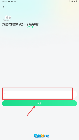 在旅行命名页面,给本次旅行起个名字,比如输入11,接着点击确认按钮。