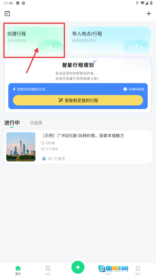 打开旅行行程规划类应用,点击创建行程选项,进入旅行取名页面。