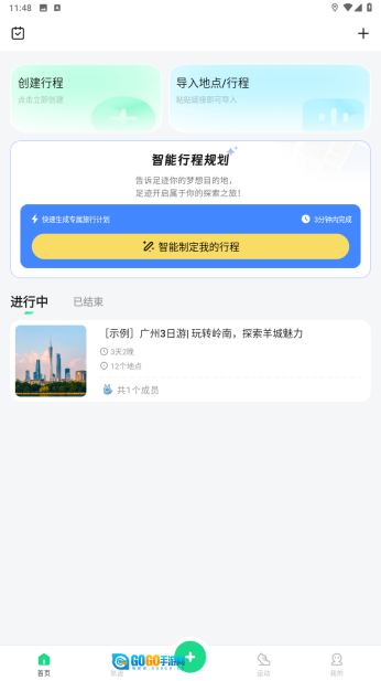 进入行程页面后,点击右上角的+按钮,就能添加与行程相关的内容。