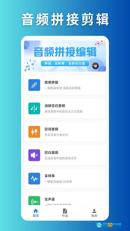 首页集成了音频拼接、空白音频消除、空间音频、空白音频生成、采样率调整及左声道提取等功能。