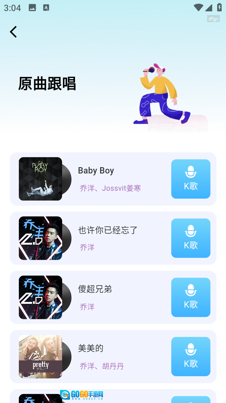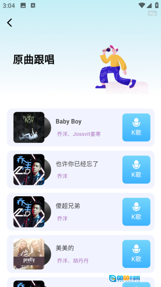 在原曲跟唱页面里有不少悦耳的歌曲,用户能够随时开展K歌活动。