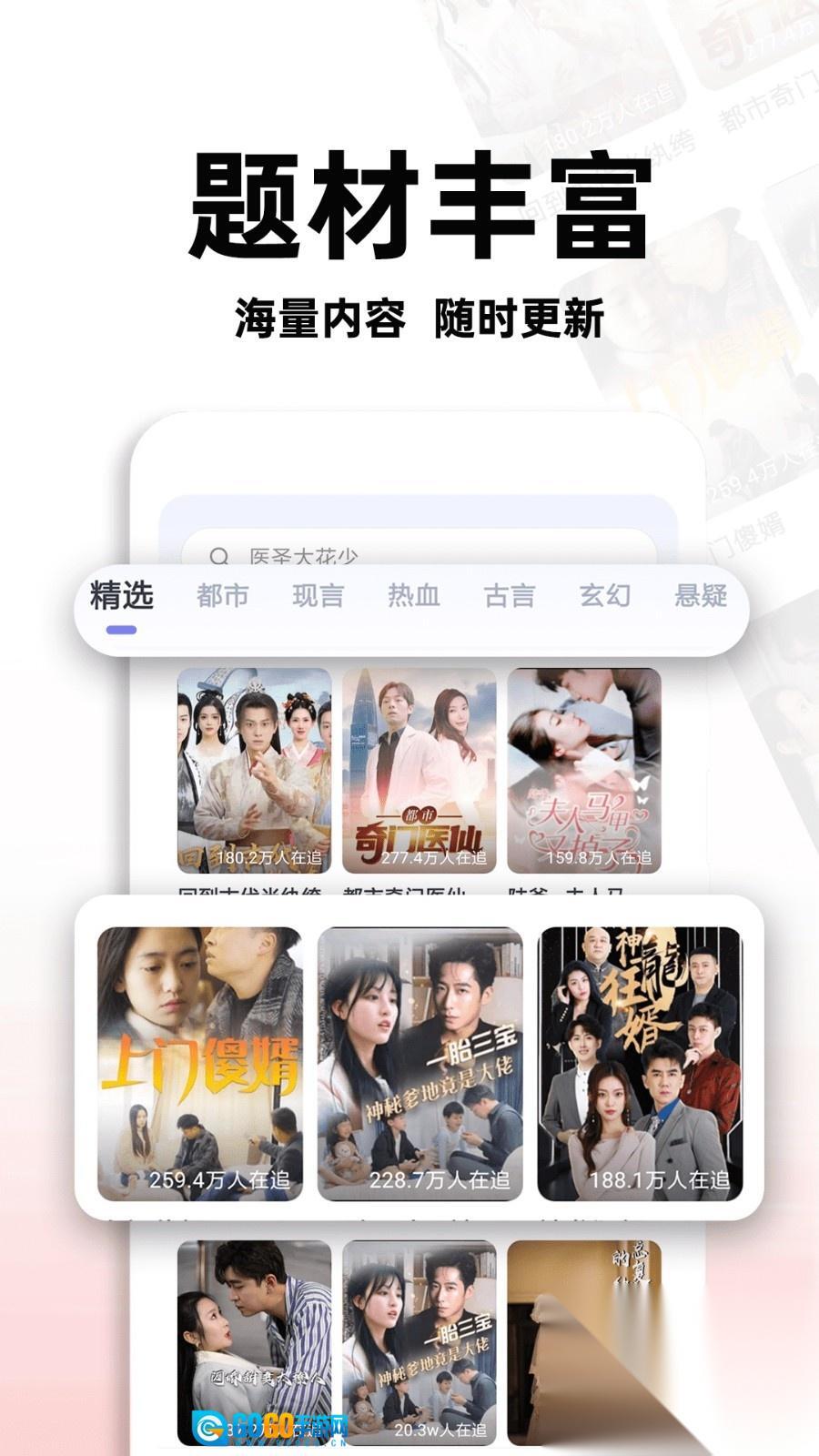 按照题材类型进行分类管理,用户可根据个人喜好挑选心仪的短剧。