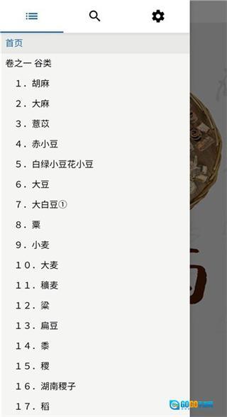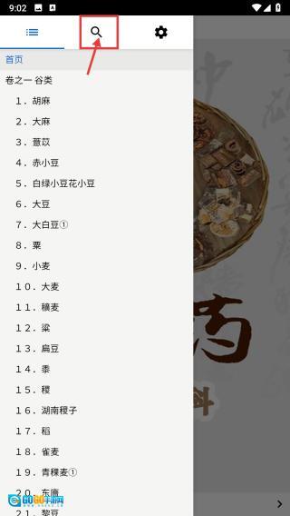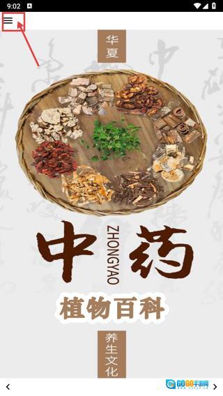 打开中药植物百科后,点击左上角的菜单按钮,即可展开功能列表。