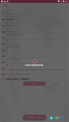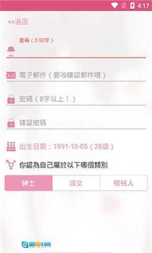 2、在注册页面中输入名称、电子邮箱、密码、出生日期等,并选择自己要注册的类别。