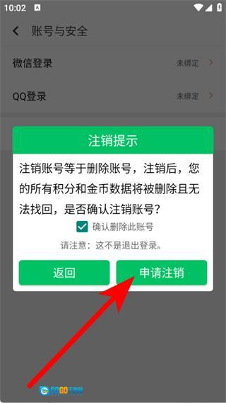 当注销提示弹窗弹出后,勾选“确认删除此账号”的选项,再点击“申请注销”按钮。