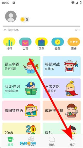 打开题王争霸应用,待进入主界面后,点击底部导航栏中的“我的”选项,即可进入个人相关页面。