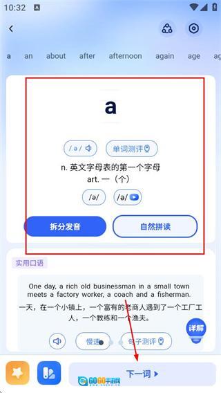 在完成当前单词的学习后,点击“下一词”按钮,就能接着学习下一个单词。