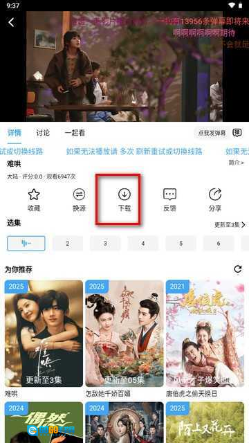 2、点击进入目标剧集的播放页面,找到并点击“”按钮开始缓存。