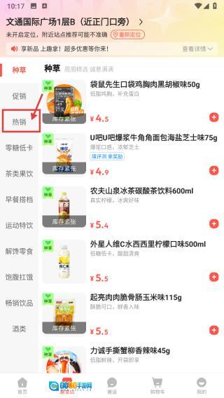 在商品选购页面,点击热销分类标签,即可筛选出热销商品列表。