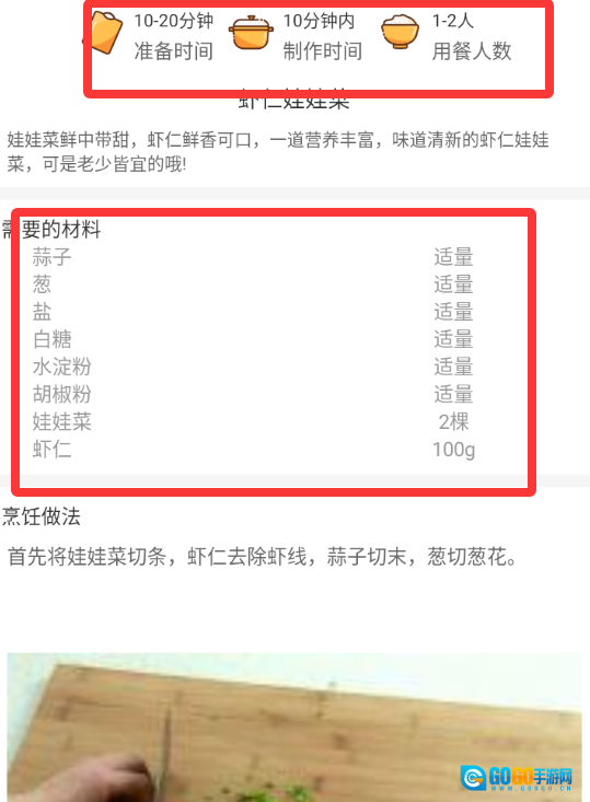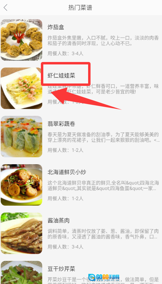 点击红色框框里的虾仁娃娃菜进去学习一下。