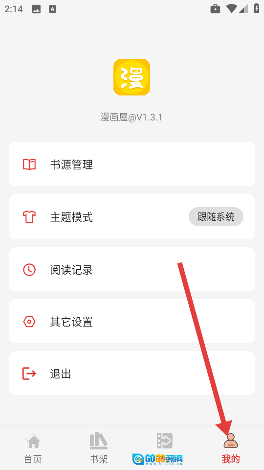 1、打开漫画屋免费版后,点击界面右下角的“我的”选项,即可进入个人中心。