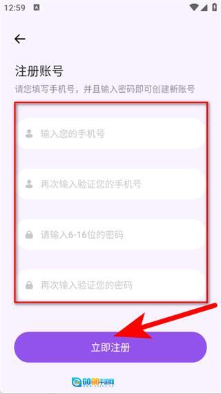 填写手机号码,完成手机号验证,设置密码并确认无误后,点击“立即注册”按钮即可。