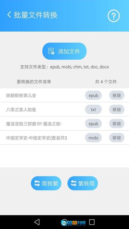 多样文件格式兼容:支持epub、mobi、chm、txt、doc、docx等多种格式,不管是电子书、文本文件还是文档文件,都能轻松完成简繁转换,无需为文件格式问题担忧。