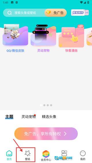 打开主题美化类应用,点击底部的壁纸选项,进入壁纸专区。
